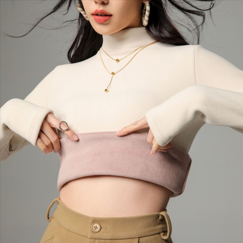 Tシャツ レディース 可愛い 服 冬 服 ハーフハイネック長袖ボトムシャツ