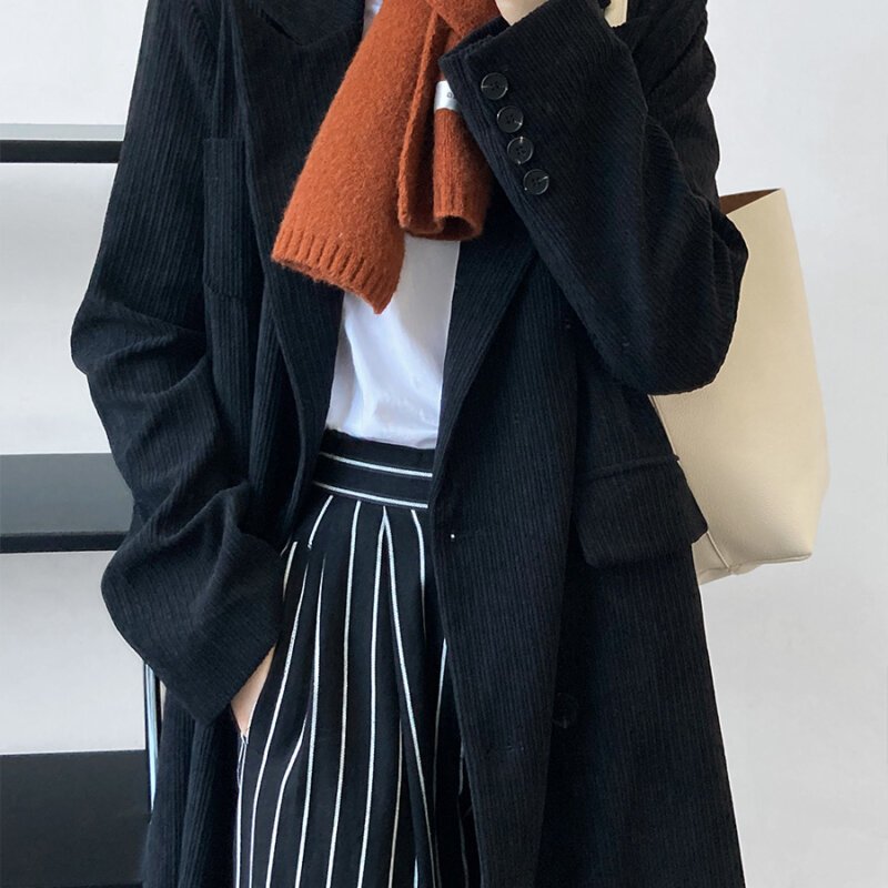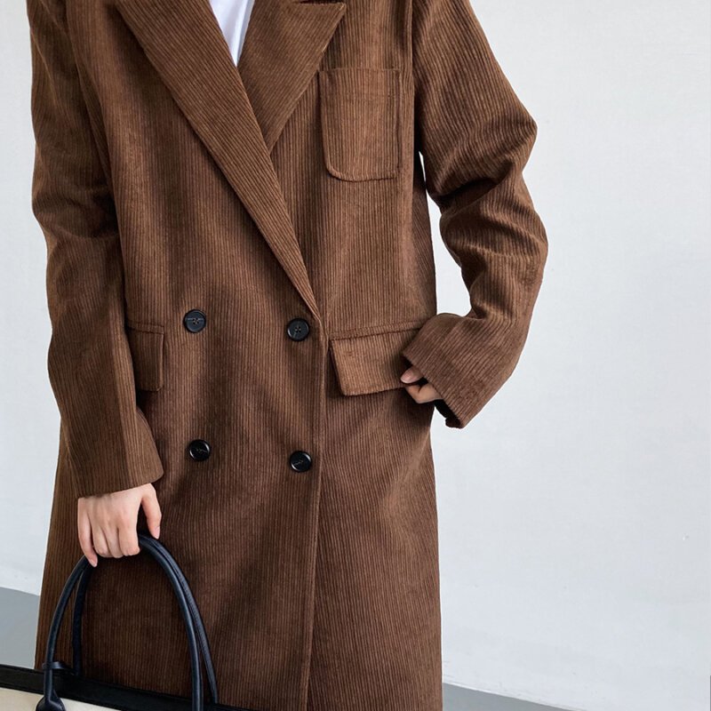 スーツ コート レディース 洋服 秋 服 コーデュロイロングニーウールコート
