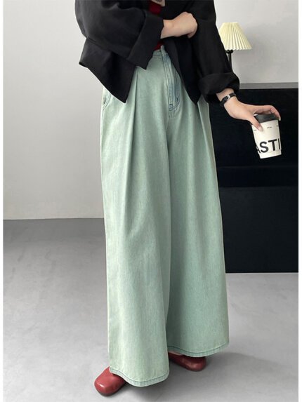 デニムパンツ レディース 可愛い 服 秋 服 ハイウエスト細身ワイドパンツ