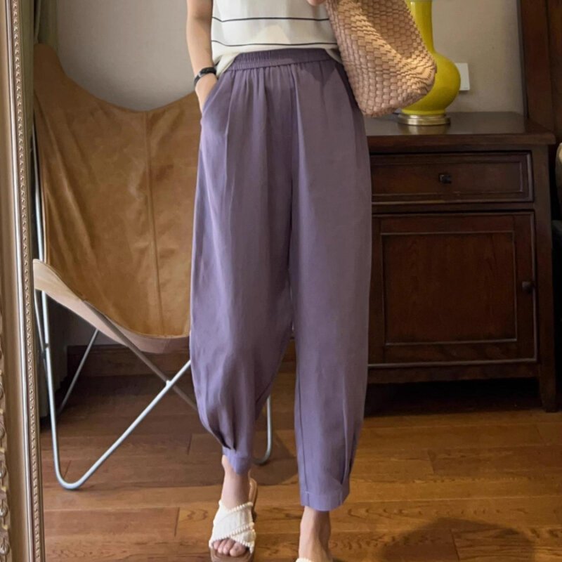 カジュアルパンツ レディース 可愛い 服 秋 服 九分丈通気性細パンツ