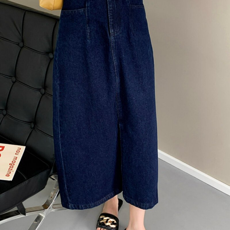 スカート レディース 洋服 秋 服 ハイウエスト薄手デニムビスチェ