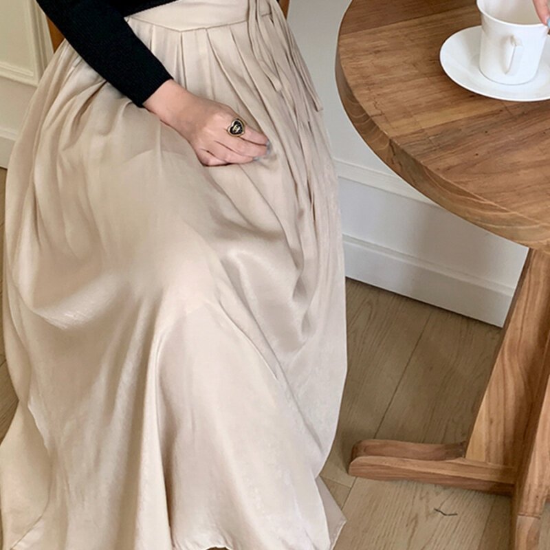 スカート レディース 洋服 秋 服 ハイウエスト薄手ロングスカート