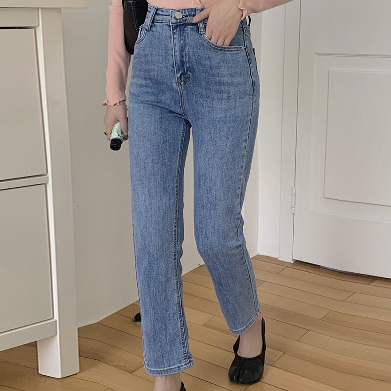 デニムパンツ レディース 可愛い 服 秋 服 レトロカジュアルハイウエスト細身