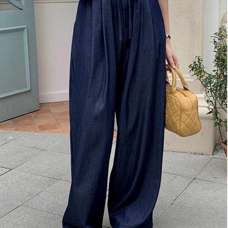 デニムパンツ レディース 洋服 秋 服 ハイウエスト細ワイドパンツ