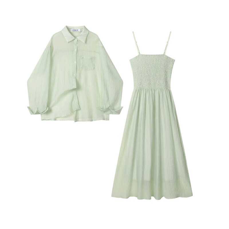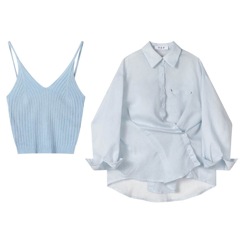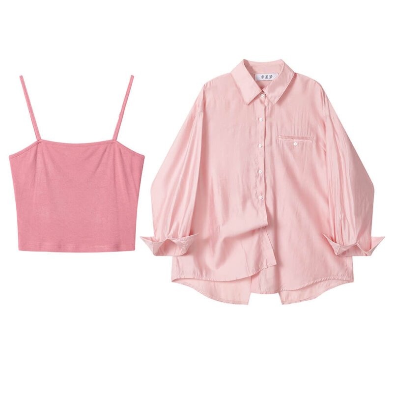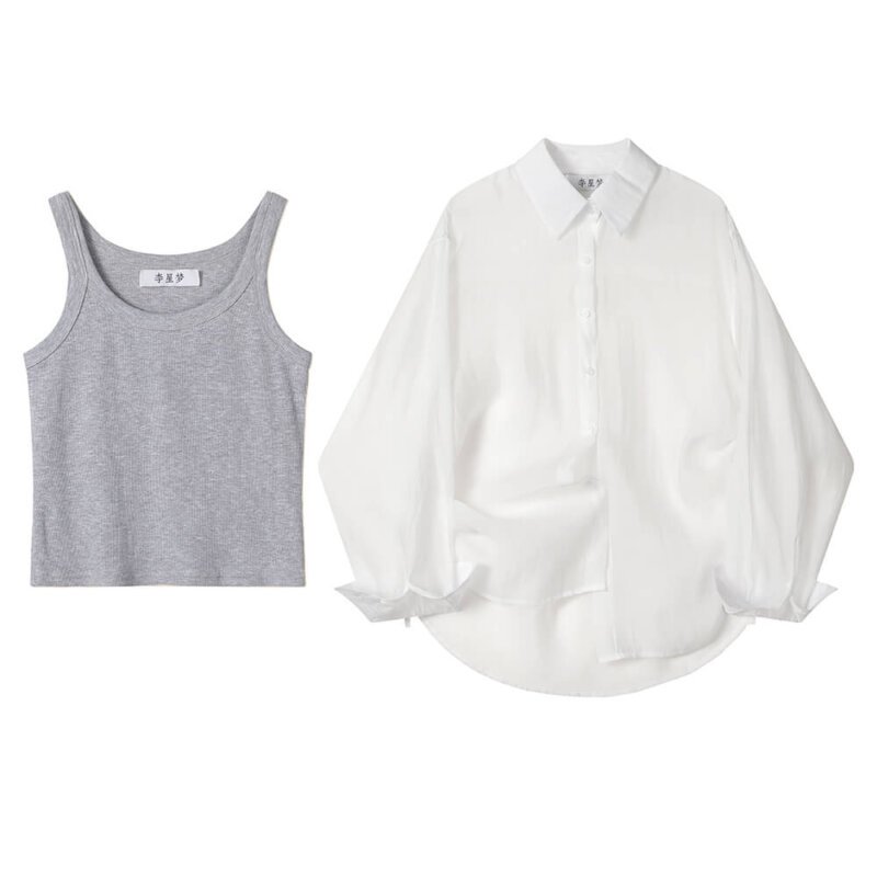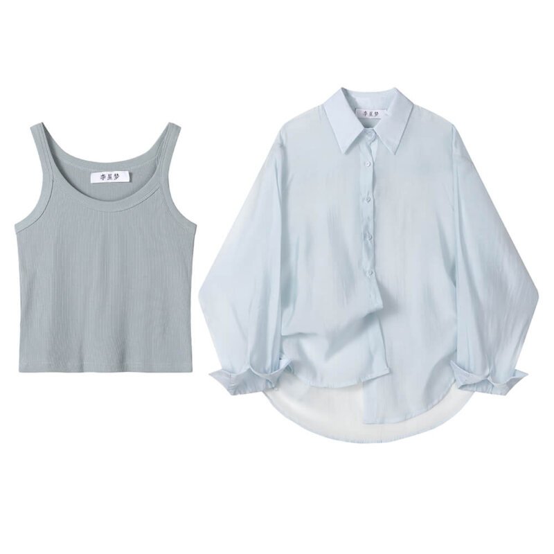 レディーススーツ塩系薄熟シニア感覚キャミソールトップスシャツ日焼け止めシャツセット