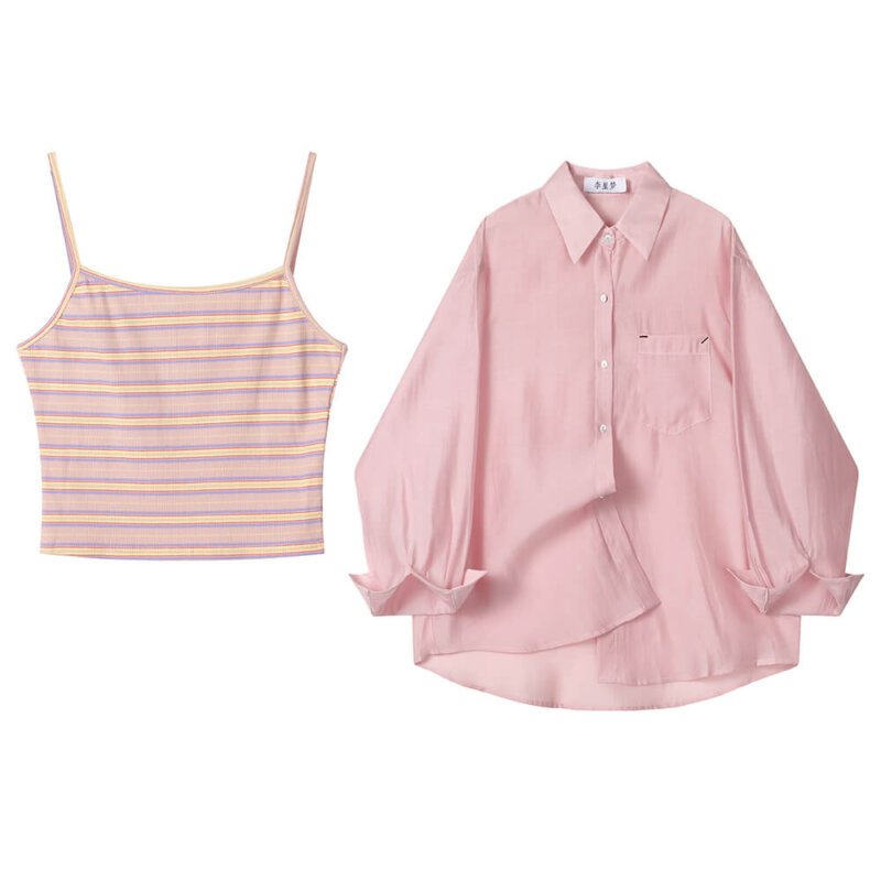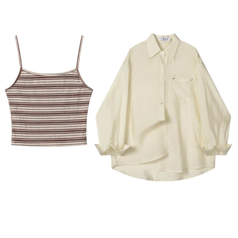 レディーススーツカジュアルライトライプフレンチシャツトップスキャミソールアンダーシャツセット
