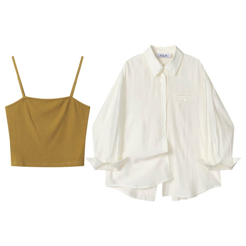 女性のスーツの光熟した風のシャツのトップスキャミソールアンダーシャツのセット