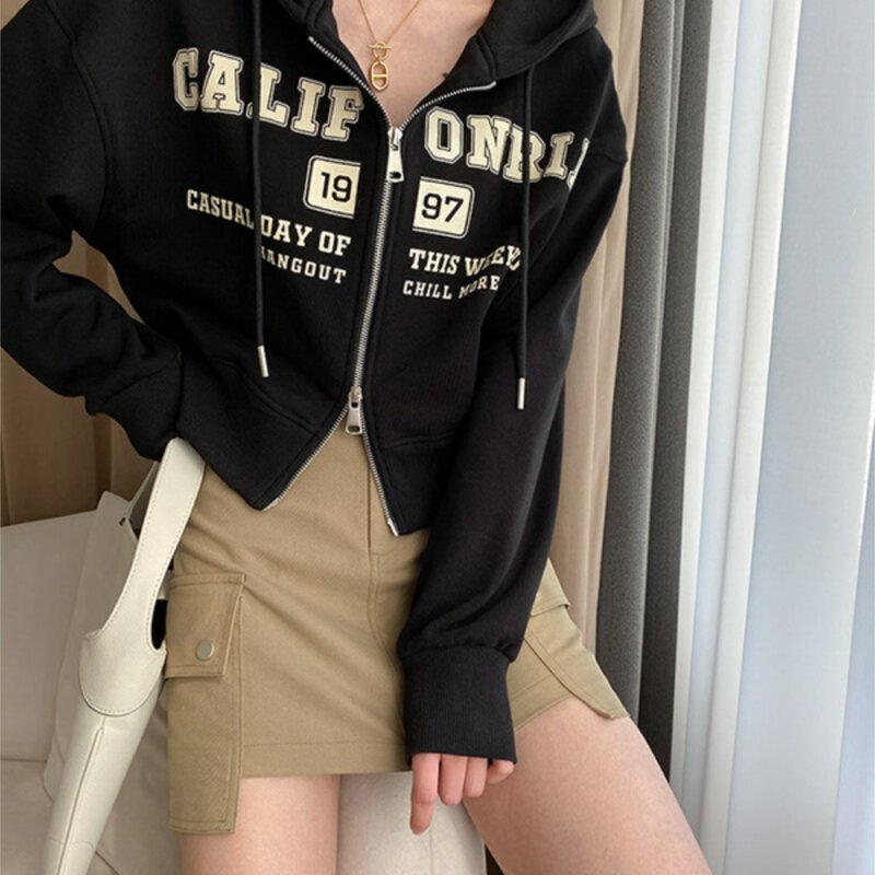 パーカー レディース 可愛い 服 秋 服 ダブルファスナーレタージャケット