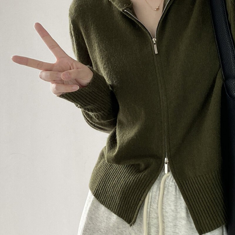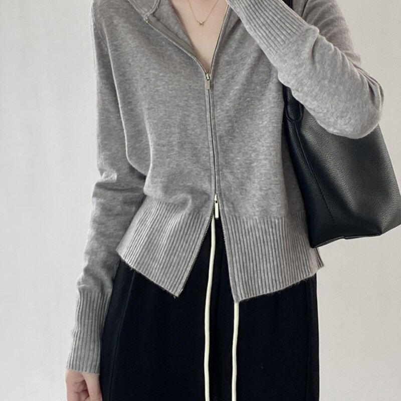 パーカー レディース 可愛い 服 秋 服 ダブルファスナーニットトップス