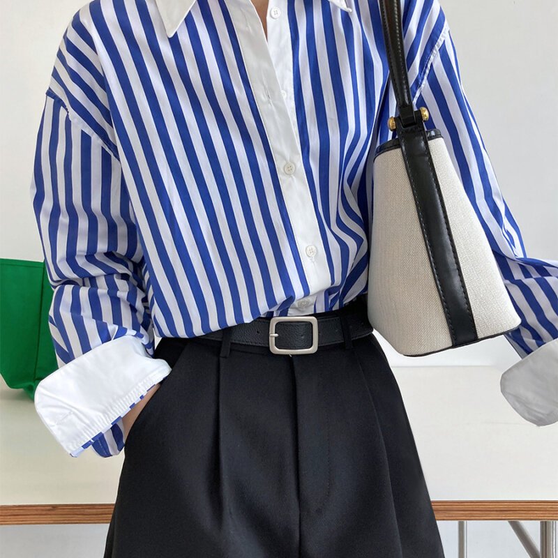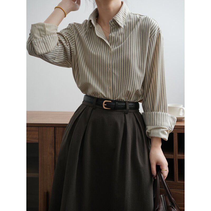 シャツ・ブラウス レディース 洋服 秋 服 ニッチデザインストライプシャツ