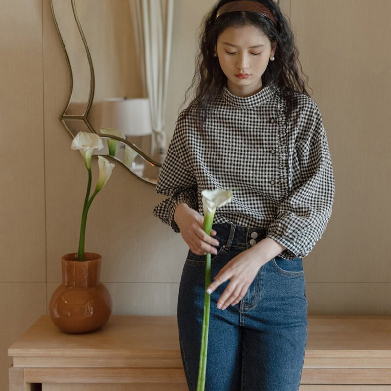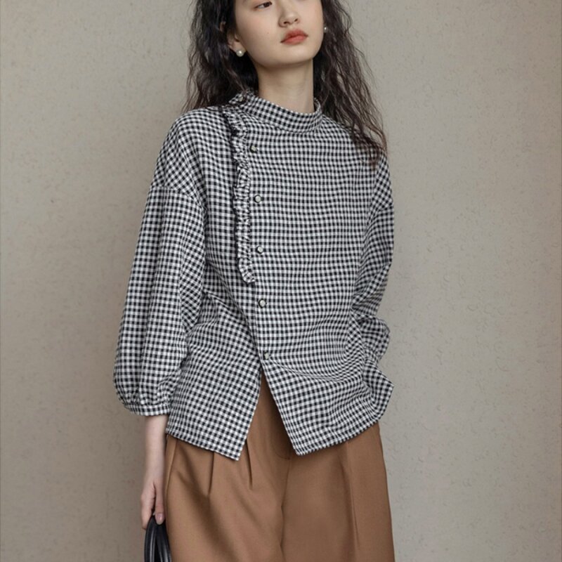 シャツ・ブラウス レディース 洋服 秋 服 フランス製長袖ブラウスの韓国版
