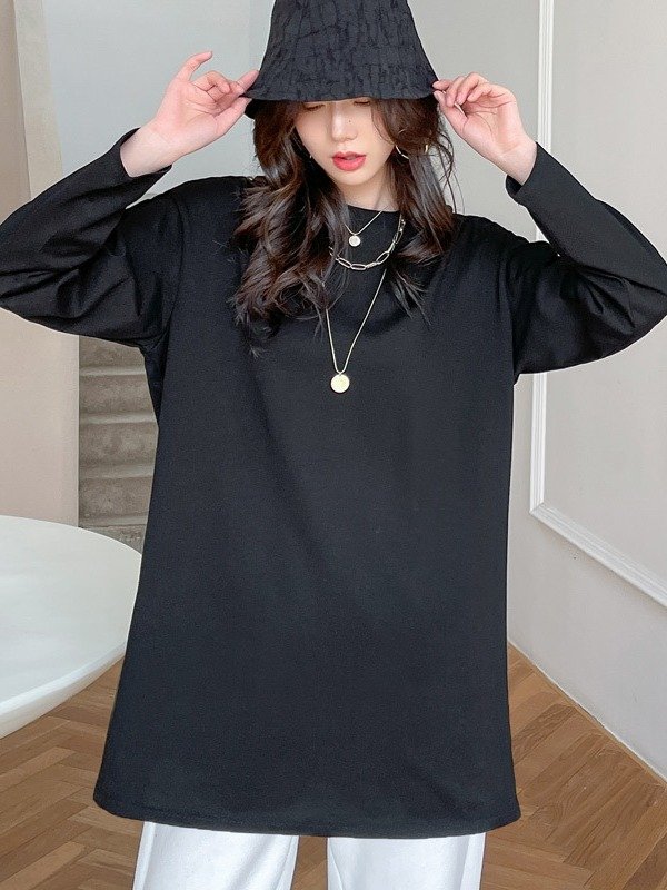 Tシャツ レディース 可愛い 服 秋 服 トレンドの大きいサイズ長袖