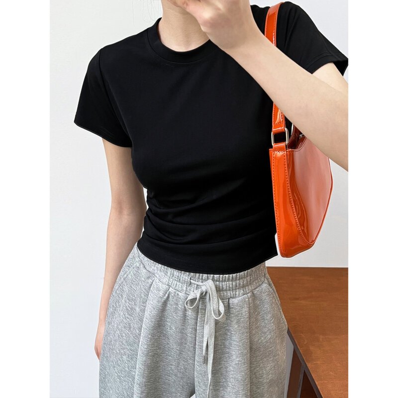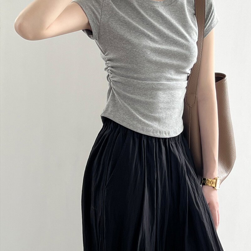 Tシャツ レディースファッション 丸首半袖ウエストドレープボトムトップス