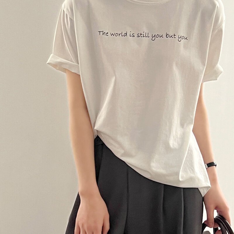 Tシャツ レディース韓国ファッション ラウンドネックルーズボトムトップス