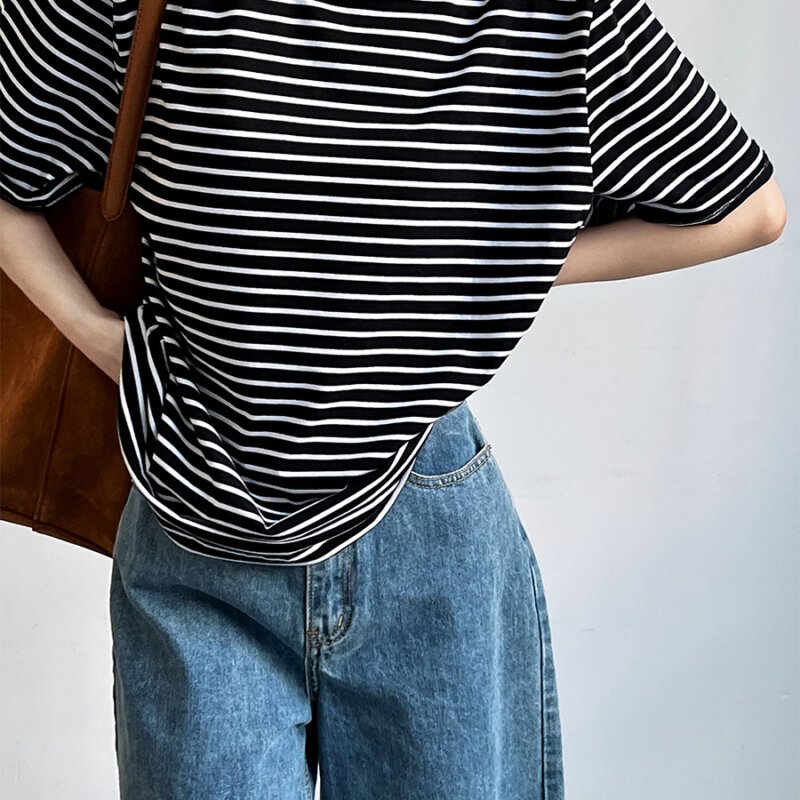 Tシャツ さん 韓国ファッション ラウンドネックルーズプルオーバー半袖ブラウス