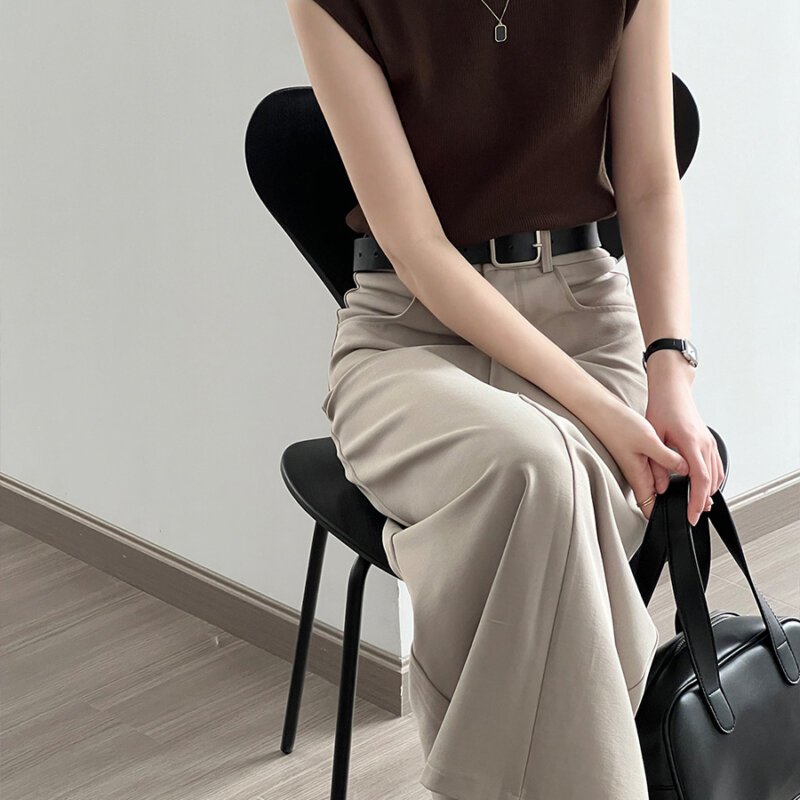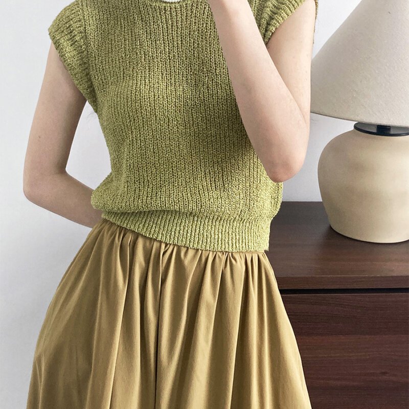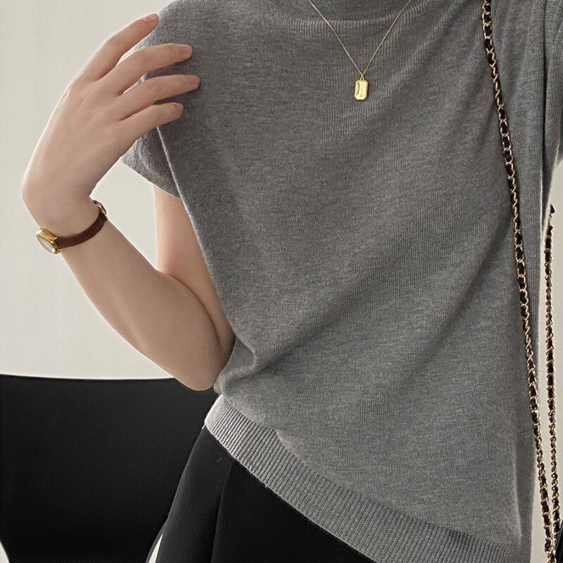 Tシャツ レディース 韓国ファッション ハーフハイネックノースリーブニットトップス