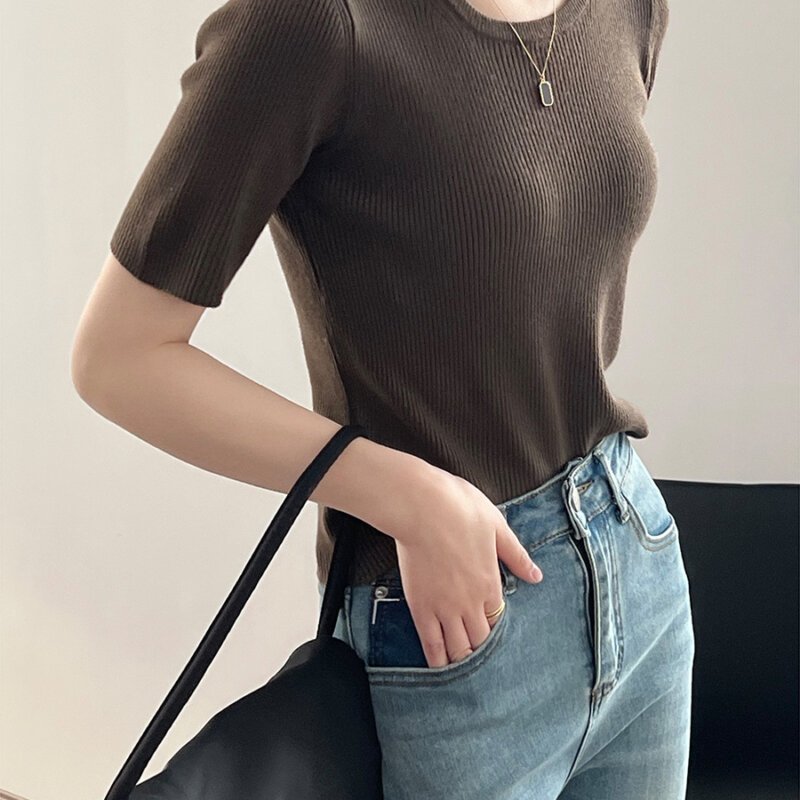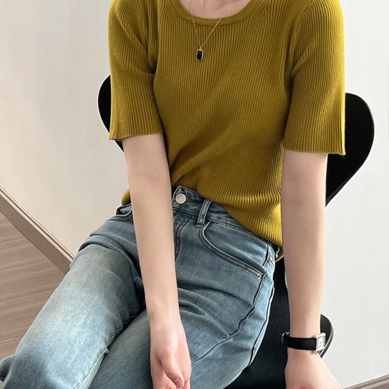 Tシャツ 女性 韓国ファッション 薄いストライプニットトップス