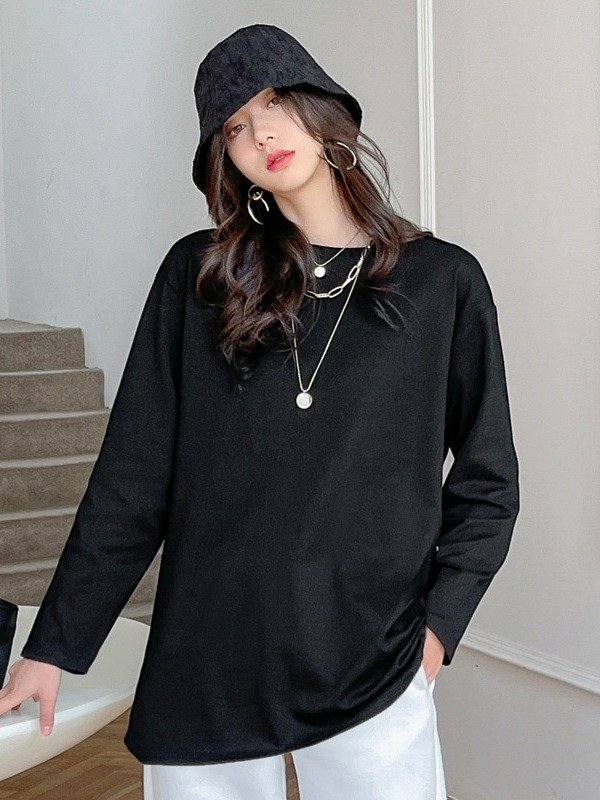 Tシャツ レディース 可愛い 服 秋 服 トレンドの大きいサイズ長袖