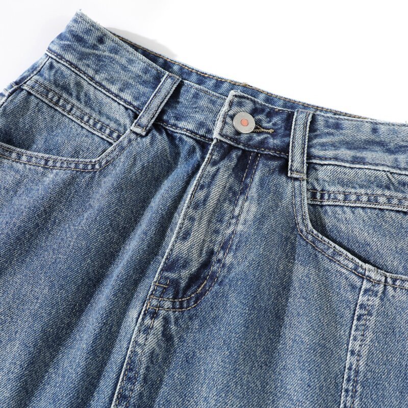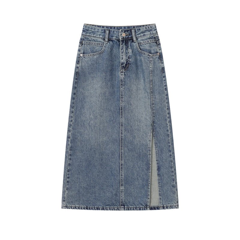 レディーススカート オープンフォーク レトロ ハイウエスト スキニー 百式 デニム ウォッシュド ハーフスカート