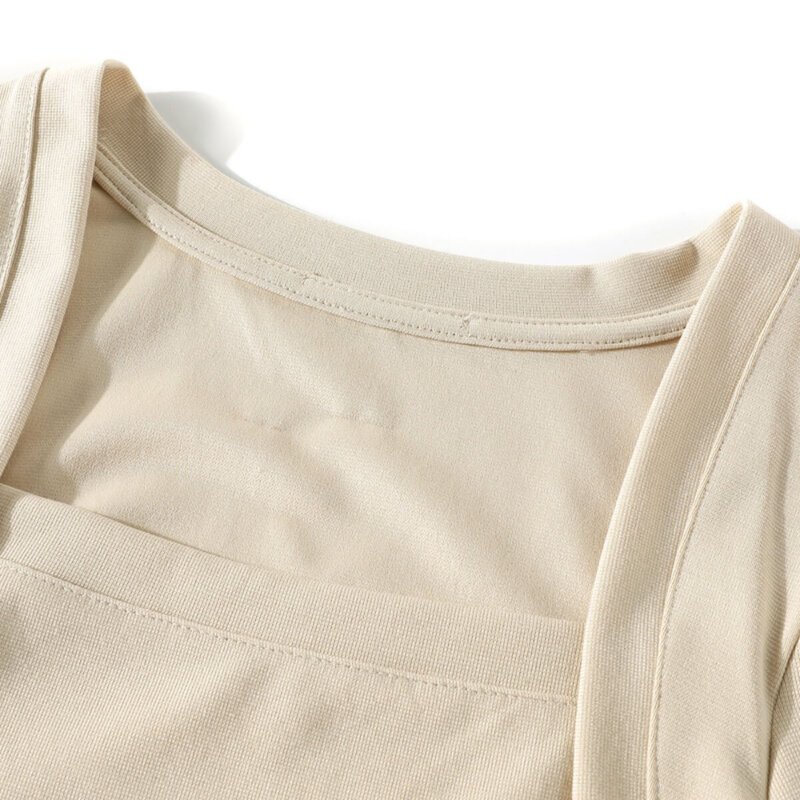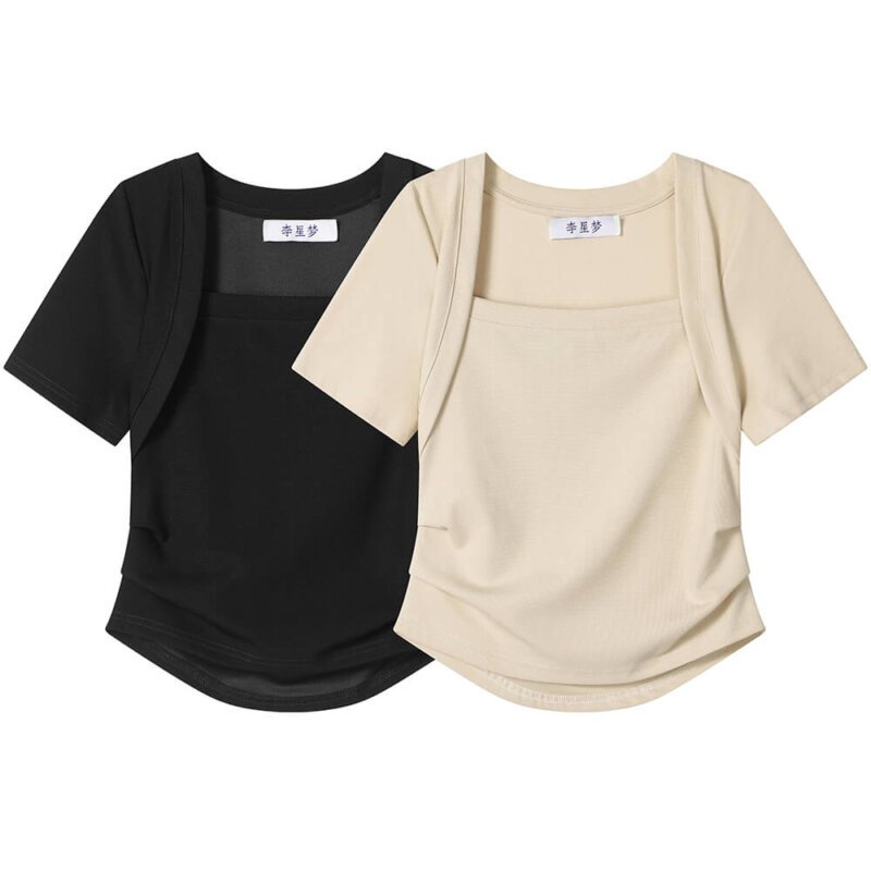 Tシャツ レディースファッション スクエアネック半袖ハイウエストスリムトップス