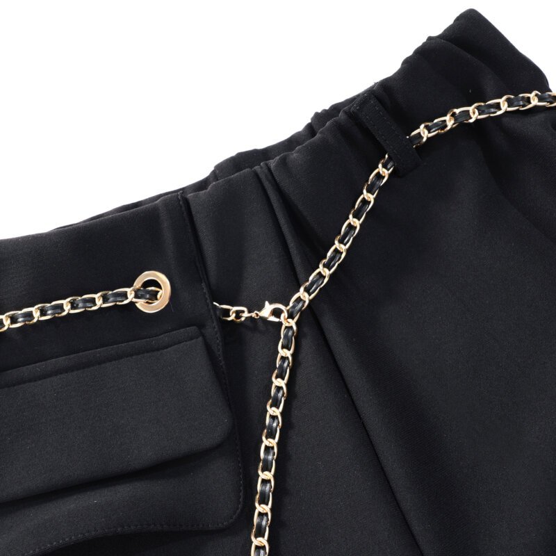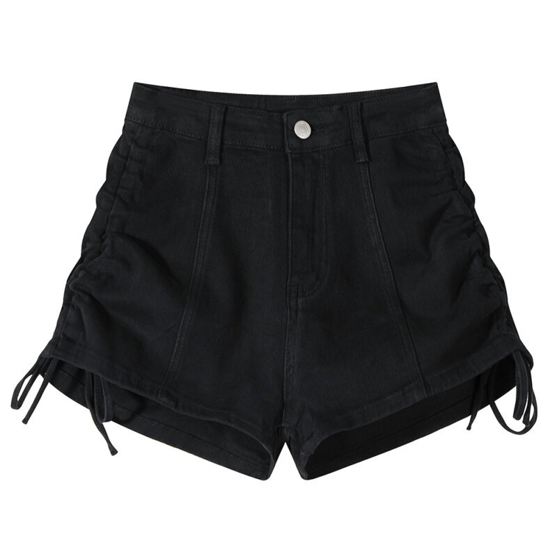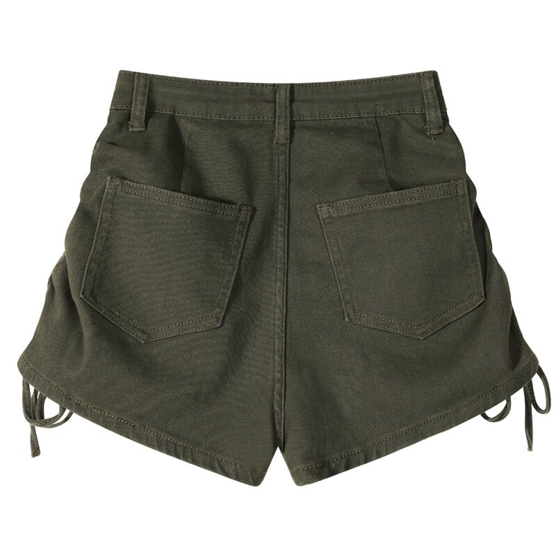 女性のショートパンツのドローストリングハイウエストワイドレッグジーンズ