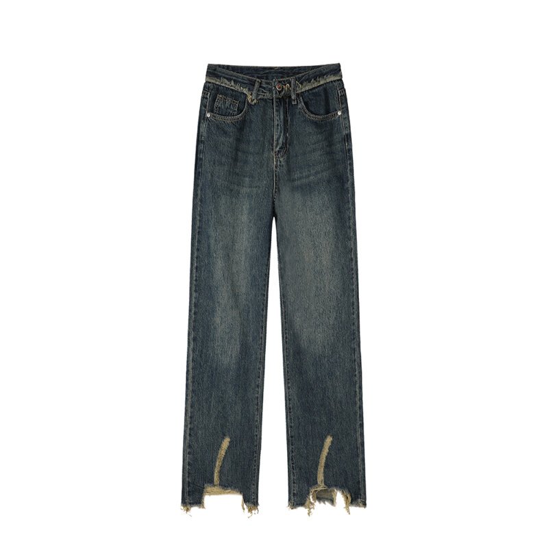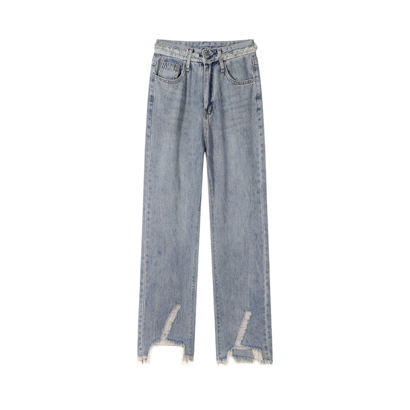レディースパンツカジュアルハイウエストオープンフォークジーンズ