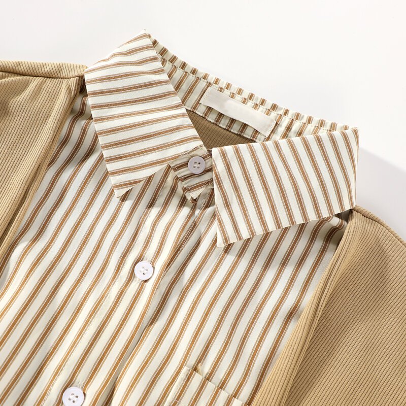 レディーストップス長袖ストライプショールフェイク2ピースシャツ