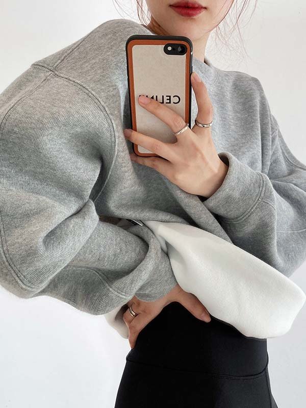 パーカー レディース 可愛い 服 秋 服 大きいサイズ韓国版長袖ラウンドネックブラウス